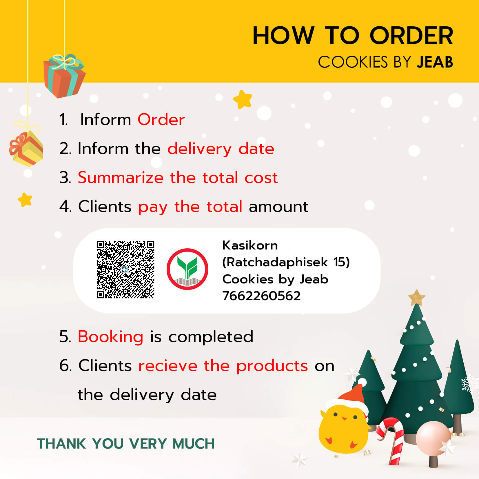 3. Customer replies email to shop@cookiesjeab.com with the transfer slip or the proof of payment and waits to receive the products on the requested date. Or Click Here